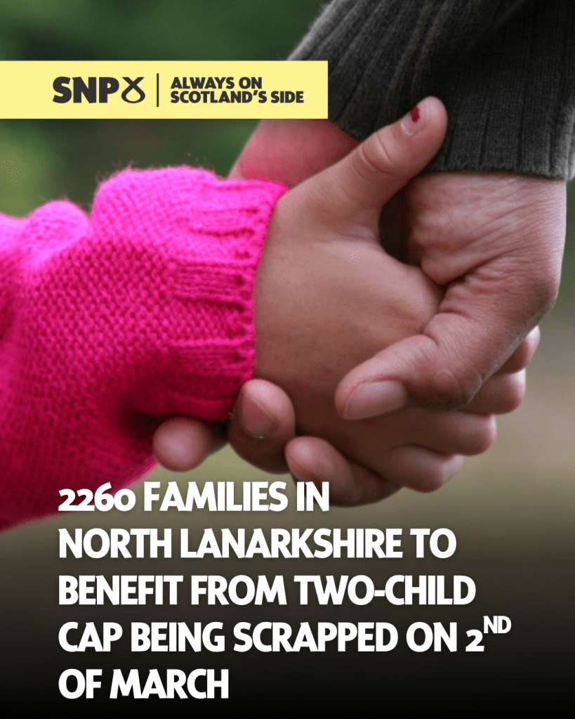 The SNP government’s decision to scrap Labour’s two child cap will help 2260 families in North Lanarkshire, as new figures reveal the number of households impacted by the cap.