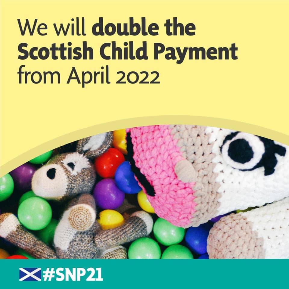 The cash is equivalent to the Scottish Child Payment – a £10-a-week benefit to assist with the costs of caring for a child aged under six years old. The Scottish Government will extend the Scottish Child payment to all eligible under-16s by the end of 2022 and are committed to double the payment to £20 per week as quickly as possible.